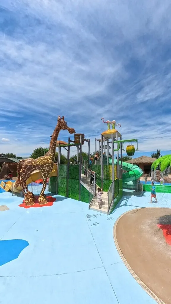 Then, we went to one of the most unique places we have ever visited: Tanganyika! Mark swam with penguins (the only place in the USA), I fed the lions and our girls fed giraffes and rhinos! We had a meet-and-greet with the penguins and rhinos, where we learned more about these animals, fed them and pet them. The rhinos were much softer than I thought! There are many animals to view and pet (my girls’ favorite animals to pet were the kangaroos). The splash pad and playground were right next to covered pavilions and a concession stand. They really thought of everything here and we definitely could have spent more time here.
