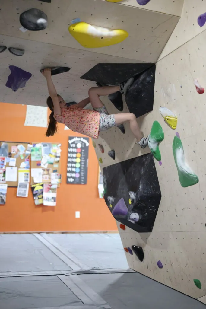 After breakfast at the hotel, we headed to Boulders and Brews. It was thunderstorming, so we decided to park the bikes at the hotel and drive there. Boulders and Brews was amazing and we could have stayed there all day! There is 3000 square feet of climbing with 90 routes. A new route is reset every Wednesday and there are rental shoes for both kids and adults. There is no minimum age and our 1.5yo loved to join in with her big sisters! We met Fallon, one of the owners, who opened the climbing gym almost 3 years ago. There is a coffee bar, a kids area with games, a sauna and so much more!