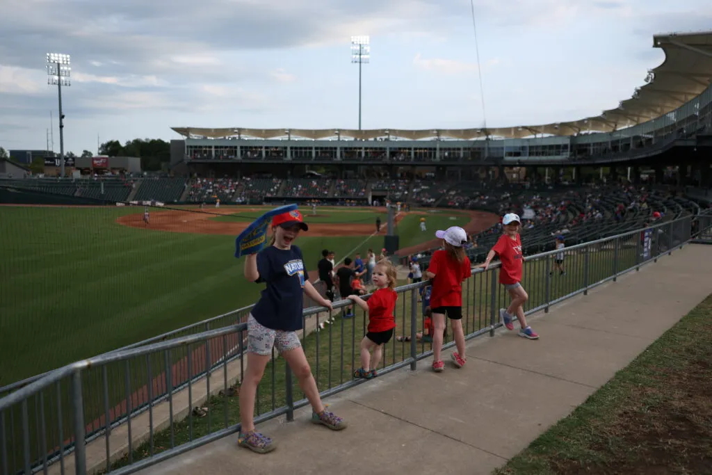 This was the most kid-friendly baseball game we have ever been to! This kids zone is right next to the field (inside the stadium). The bounce houses, baseball simulator and mini golf were all open through the 7th inning. This was all inside of the stadium gates and we could view the stadium from here! In addition to all of these fun things, there is a train ride that goes around the whole baseball stadium. There is also a great playground right at the back of the stadium. My 3yo said, “Mom, I wish I could live here at the stadium!” Honestly, me too! It really was that cool. The Naturals won the game and we had fun cheering them on. When we left the game, the staff handed out suckers. This was so family-friendly!!
