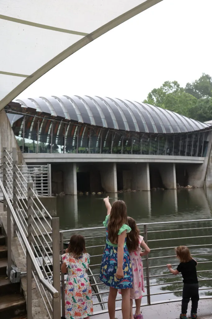 Next, we headed to one of the coolest places I have been to! Crystal Bridges is massive and was much larger than what I had pictured. It was founded by Alice Walton, and the Walton Family Foundation played a huge role in the development. Crystal Bridges is situated on 134 acres of Ozark nature and the general admission is always free. This stunning museum focuses on American art and stunning architecture. There are 5 miles of trails on the museum grounds with sculptures around the trails. We took the free shuttle from Amazeum to Crystal Bridges.