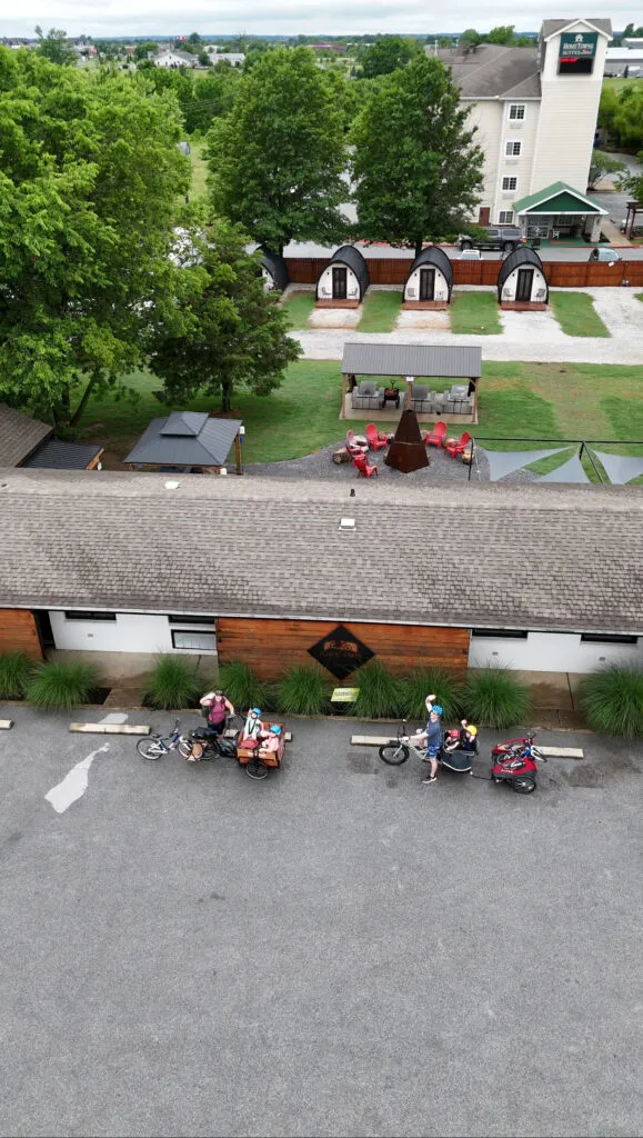 Our family loaded up our bikes and drove to NW Arkansas for an awesome biking adventure! We started in Fayetteville and rode the Razorback Greenway to Springdale and ended in Bentonville. We stayed in different lodging options along the way, and carried our kids and gear on our bikes. We parked our car and trailer at our first stop and my husband took an Uber back to our car to bring it back to us! Our total bike trip was 55 miles and it was such a great experience in this very bike-friendly area.