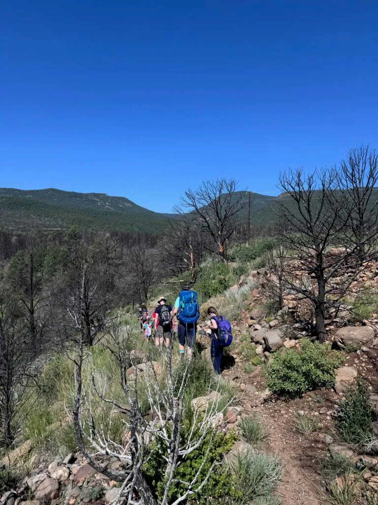 We were led by staff to a beautiful Mexican homestead camp. We learned about the homestead here in the wilderness and what life was like in the early 1900s. The staff was dressed in character (the backcountry staff lives here all summer). We saw how they lived and even helped to make Adobe bricks. My girls were living their best life by packing mud into the brick molds! There was also the BEST root beer in the trading post here, which tasted even more amazing after the hike here.