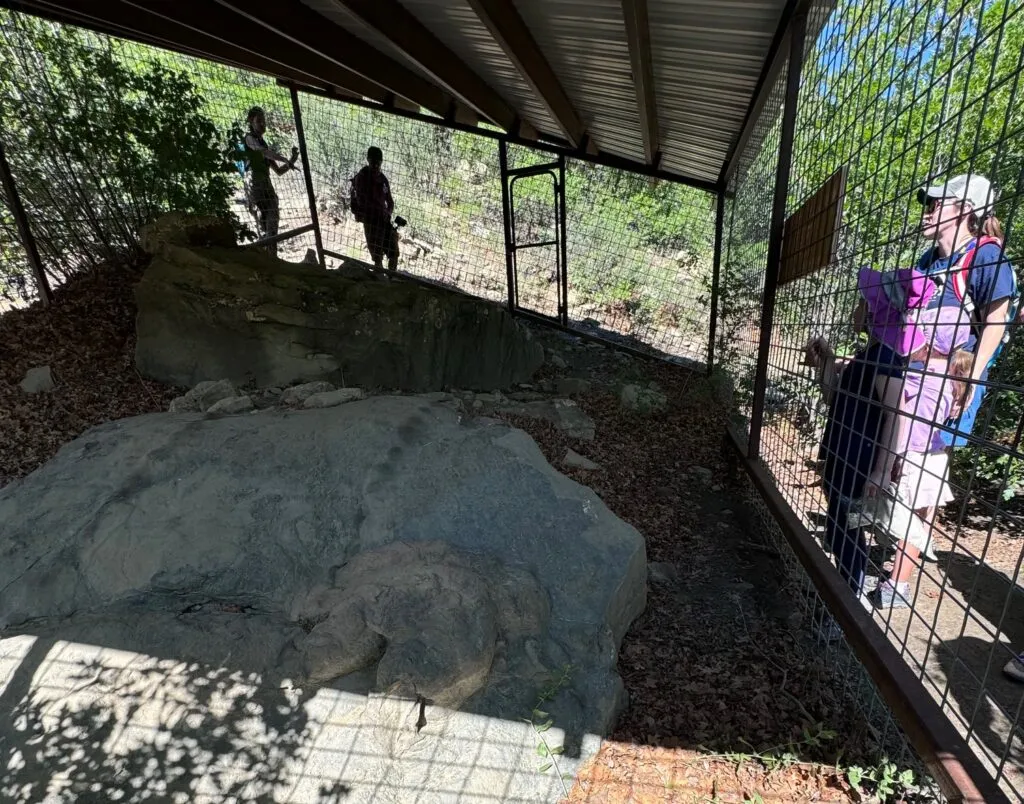 Philmont is home to one of the only two confirmed Tyrannosaurus Rex footprints in the world! This is a 2.25 mile round trip hike. Super kid-friendly! The trail winded through a beautiful valley. In 1963, geologist Charles Pillmore discovered a 96cm long fossil footprint. It is a fossilized track of the hind foot of a T-Rex from 65-70 million years ago. A little further up the trail, we saw the fossil of a Hydrosaur claw.