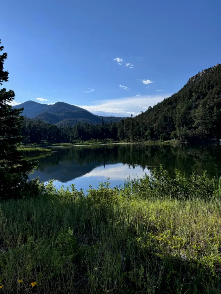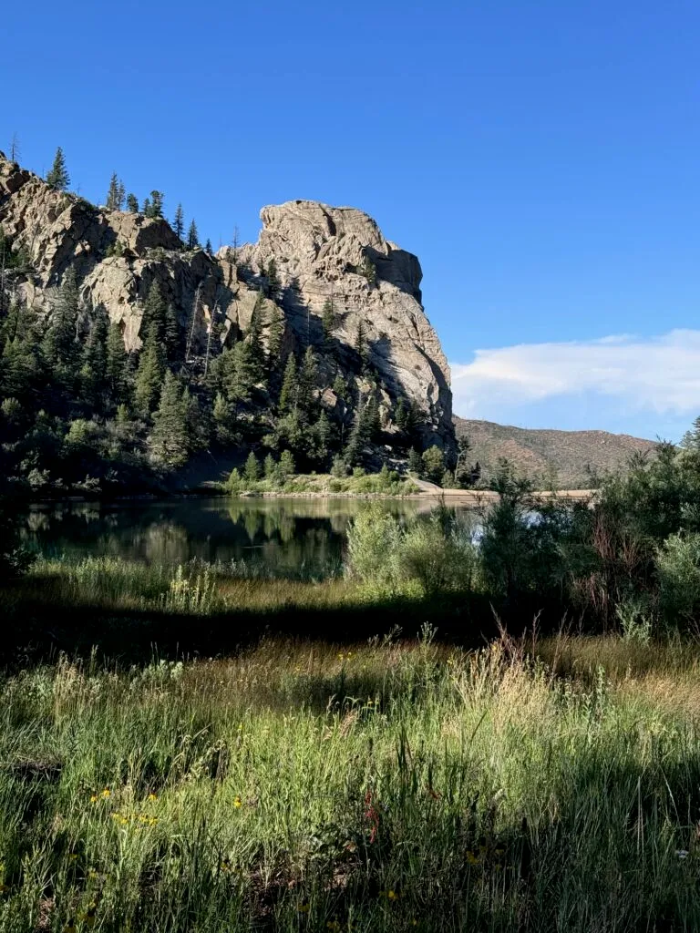 We were driven to a one night tent campout next to the historic hunting lodge of Waite Phillips. Phillips gave 127,000 acres of his favorite ranch in New Mexico to Boy Scouts of America. The iconic Cathedral Rock just above the Cimarroncito Reservoir was beautiful. We received a tour of Phillips’ historic hunting cabin, had a chuckwagon campfire meal (yummy biscuits over chili) and storytime around the campfire. The wonderful staff set up our tent, gave us sleeping pads and pillows/linens. This was a fun one night trip before returning back to our glamping tent! In the morning, we hiked 1 mile down to the reservoir with our 2 guides. Staff picked up our gear and then picked us up from the reservoir to drive back. The wildflowers here were incredible.
