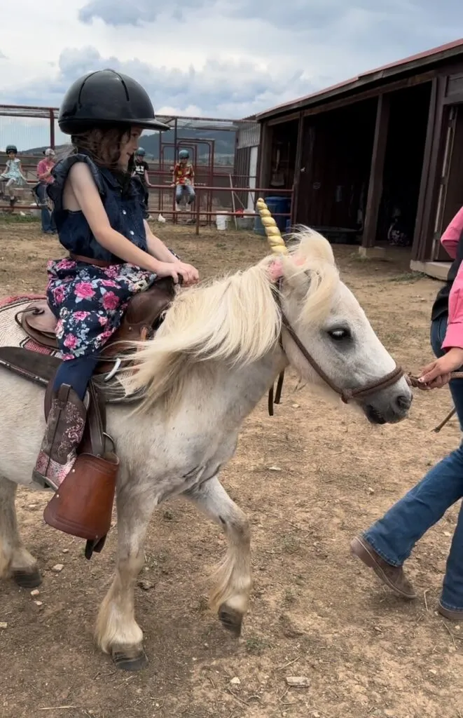 Riding Mickey the unicorn was a huge highlight for my girls! Our girls loved brushing the ponies and learning more about their care. We also held chickens, fed goats and donkeys! This was such a peaceful and fun experience.