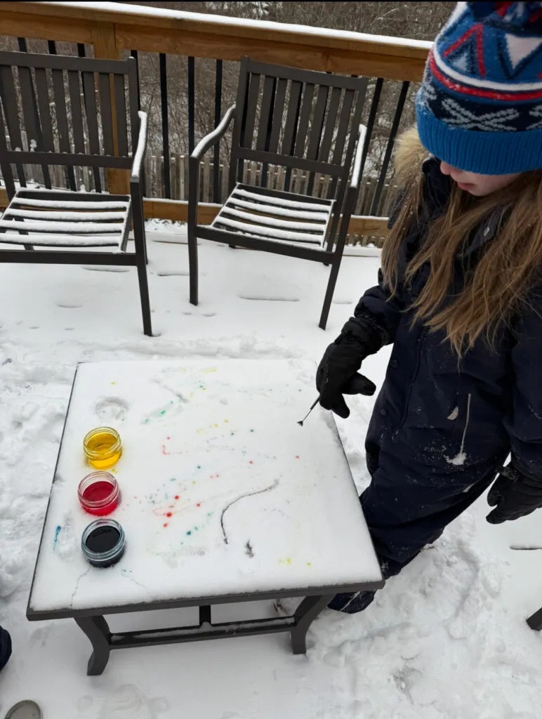 It is our second snow day this week in St. Louis, so I thought it would be fun to share some low-effort snow activities! These were relatively easy to set up and we had all the items on hand at home. I hope these can offer some fun ideas to enjoy the snow as a family.