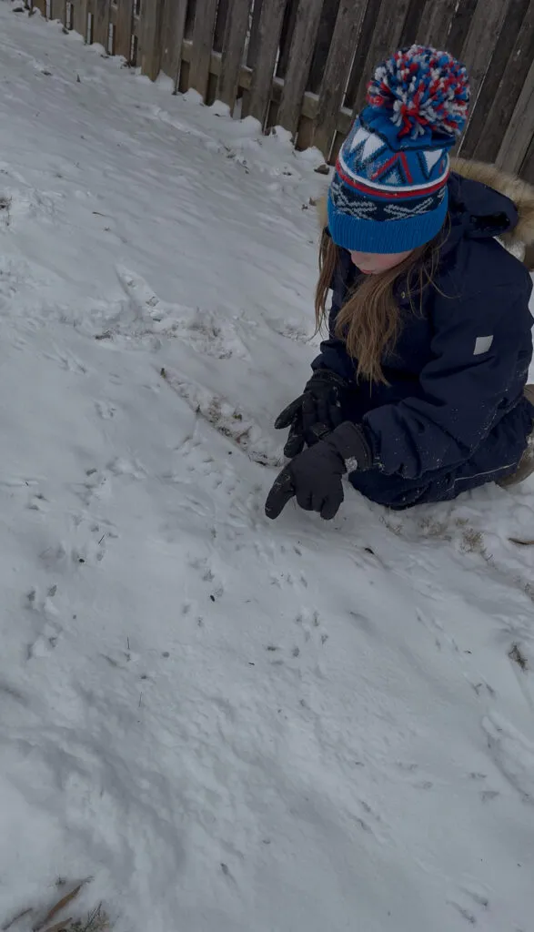 This is a favorite of ours! We love to look for animal tracks on fresh fallen snow. We back up to woods, so taking a binoculars or magnifying glass and watching for animals and their tracks is a favorite past time.