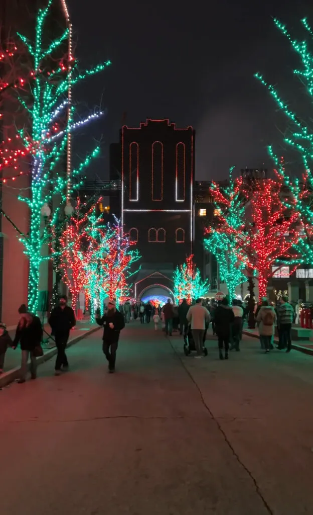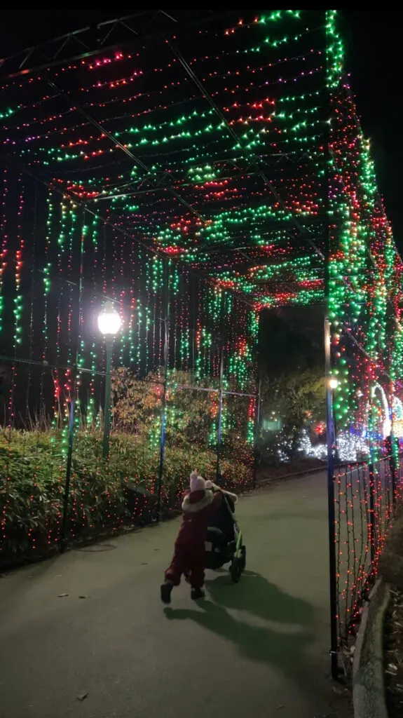 This is one of our favorite walk throughs! This has over 2 million lights throughout the gardens. I think our favorite section is the Central Axis across from the Climatron where the trees are synchronized to music! The unique display along the Tower Grove house is amazing too.